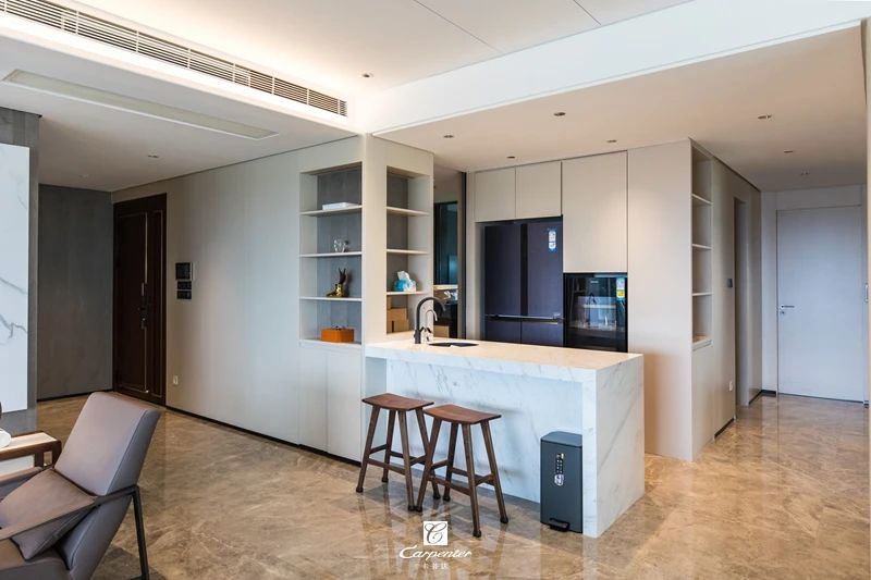 吧臺半開放設(shè)計,增加通透感