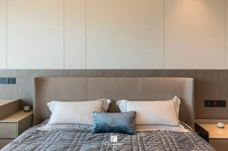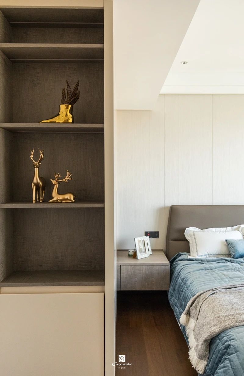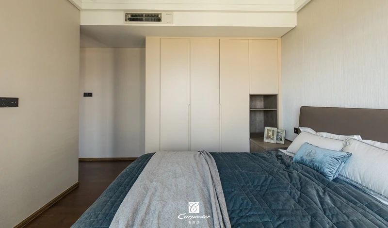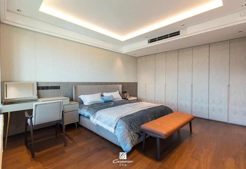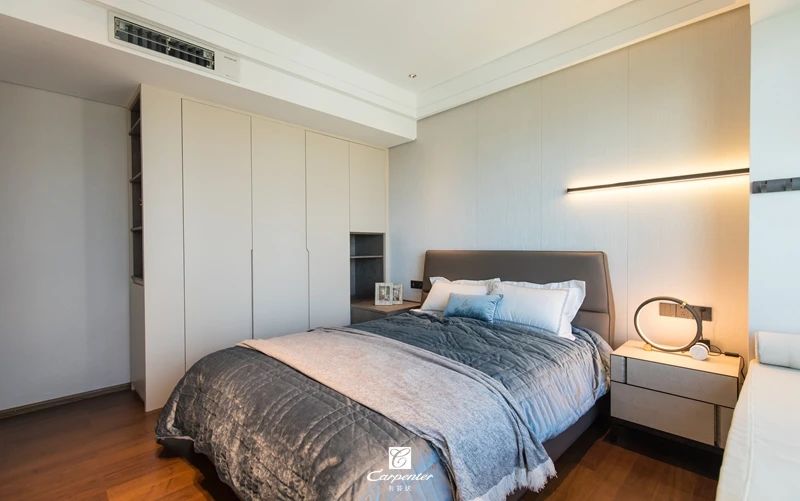 主臥空間以灰白為基調(diào),主打純色空間
