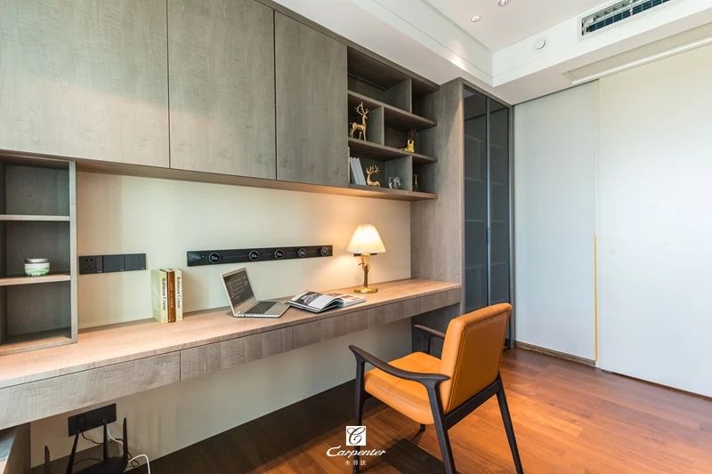 懸空一體超長書桌+定制滿墻書柜